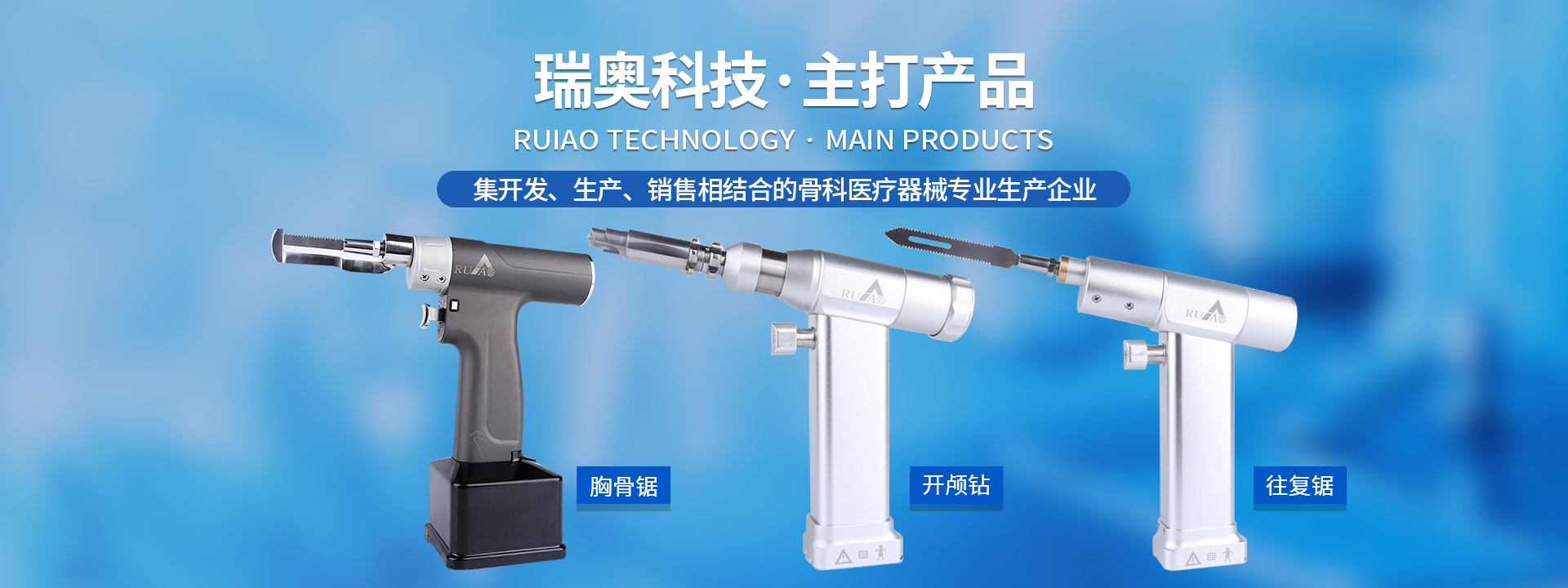 鹽城瑞奧科技有限公司主要產品:醫用電動鋸鉆系列(可高溫高壓消毒和熏蒸消毒兩種):包含骨鉆、擺鋸、胸骨鋸、空心骨鉆、開顱鉆、顱骨銑等等,適用于骨科、腦外科、神經外科、胸外科、手足及顯微外科、脊柱外科、整形外科等各種手術的要求。電動石膏鋸可切割高分子繃帶、石膏等?;A器械系列:咬骨鉗,髓核鉗,椎板咬骨鉗,持骨鉗,四肢骨折手術器械包等。